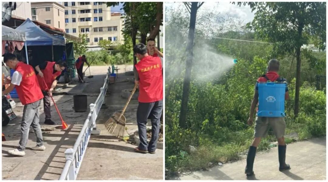 船埔镇 国庆期间,船埔镇联合市交通运输局、气象局等市直挂钩单位组建“两清”攻坚队,组织200余名党员深入埔仔村、船埔村开展基孔肯雅热防控和人居环境整治工作,尤其是针对雨水井、下水道、背街小巷等蚊虫易孳生的卫生死角与重点区域,全面清理枯枝、绿化带内垃圾及各类杂物,从源头减少蚊虫孳生环境。同时,对公共场所、绿化带、下水道、垃圾收集点等蚊虫易聚区域喷洒灭蚊药剂,对阴暗潮湿场所进行烟雾消杀,精准杀灭蚊虫,有效降低疾病传播风险。