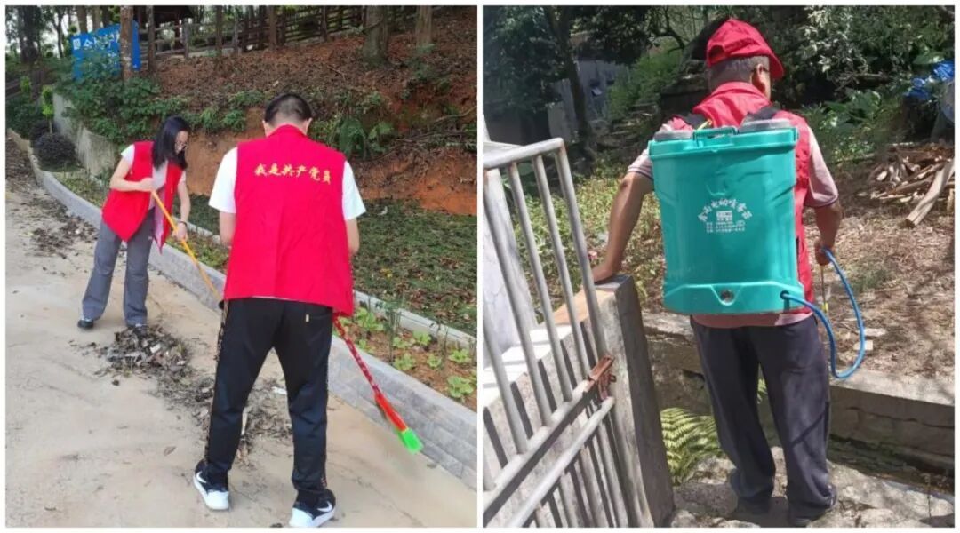 里湖镇 国庆、中秋节“双节”期间,里湖镇将人居环境整治与基孔肯雅热、登革热“双热”防控紧密结合,联合市委办公室、市财政局、市融媒体中心等挂钩单位,深入开展“党建星期四”活动,主动协助村开展“两清一灭”工作。党员干部背上喷雾器,提起消杀剂,对村内水体、绿化带、垃圾站及村民院落等30多处地方进行全覆盖药物喷洒,着力切断疾病传播链条。同时,帮助群众倾盆倒罐、清理积水,全面清除卫生死角和各类积水容器,从源头上消除蚊虫孳生地,有效降低蚊媒疾病传播风险。