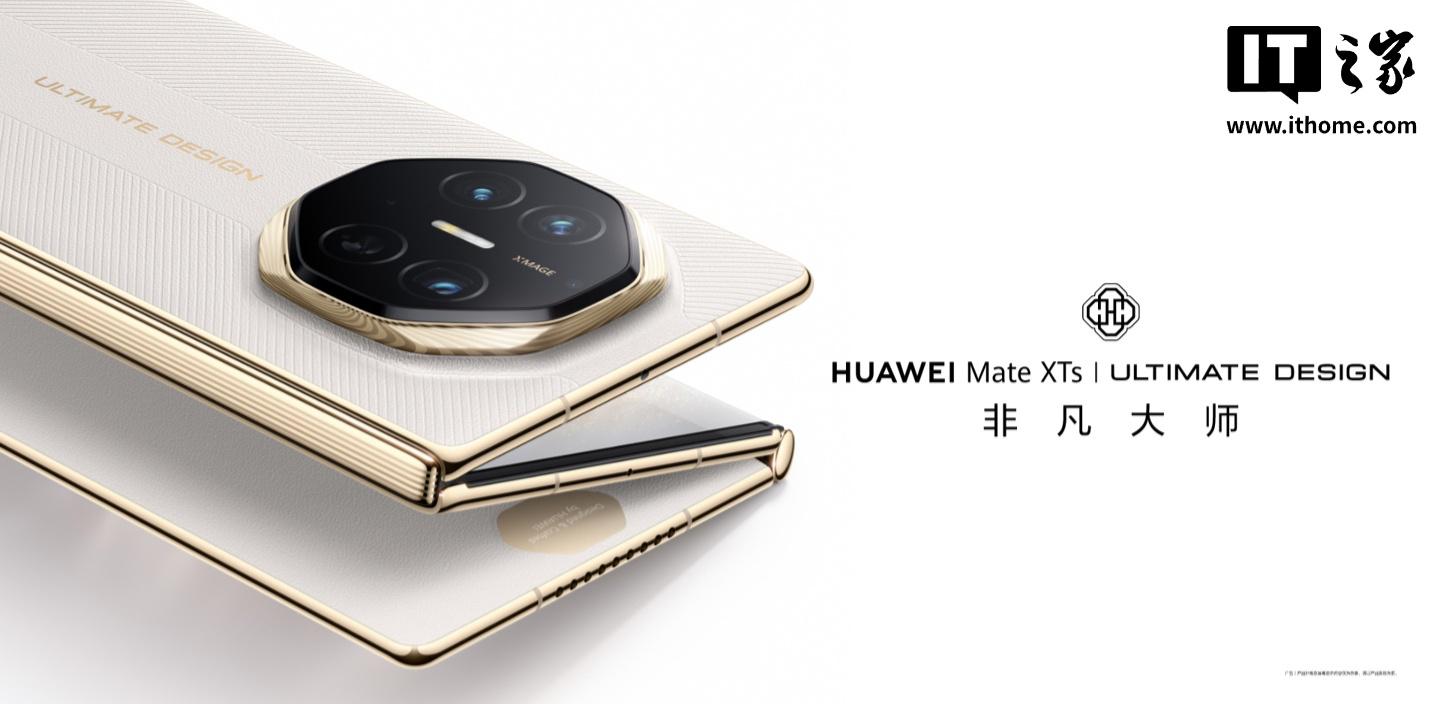 华为 Mate XTs 非凡大师三折叠手机现已开启首销,采用全新非凡大师家族徽标,提供玄黑、瑞红、槿紫、皓白四款配色,搭载麒麟 9020 处理器,整机性能提升 36%。