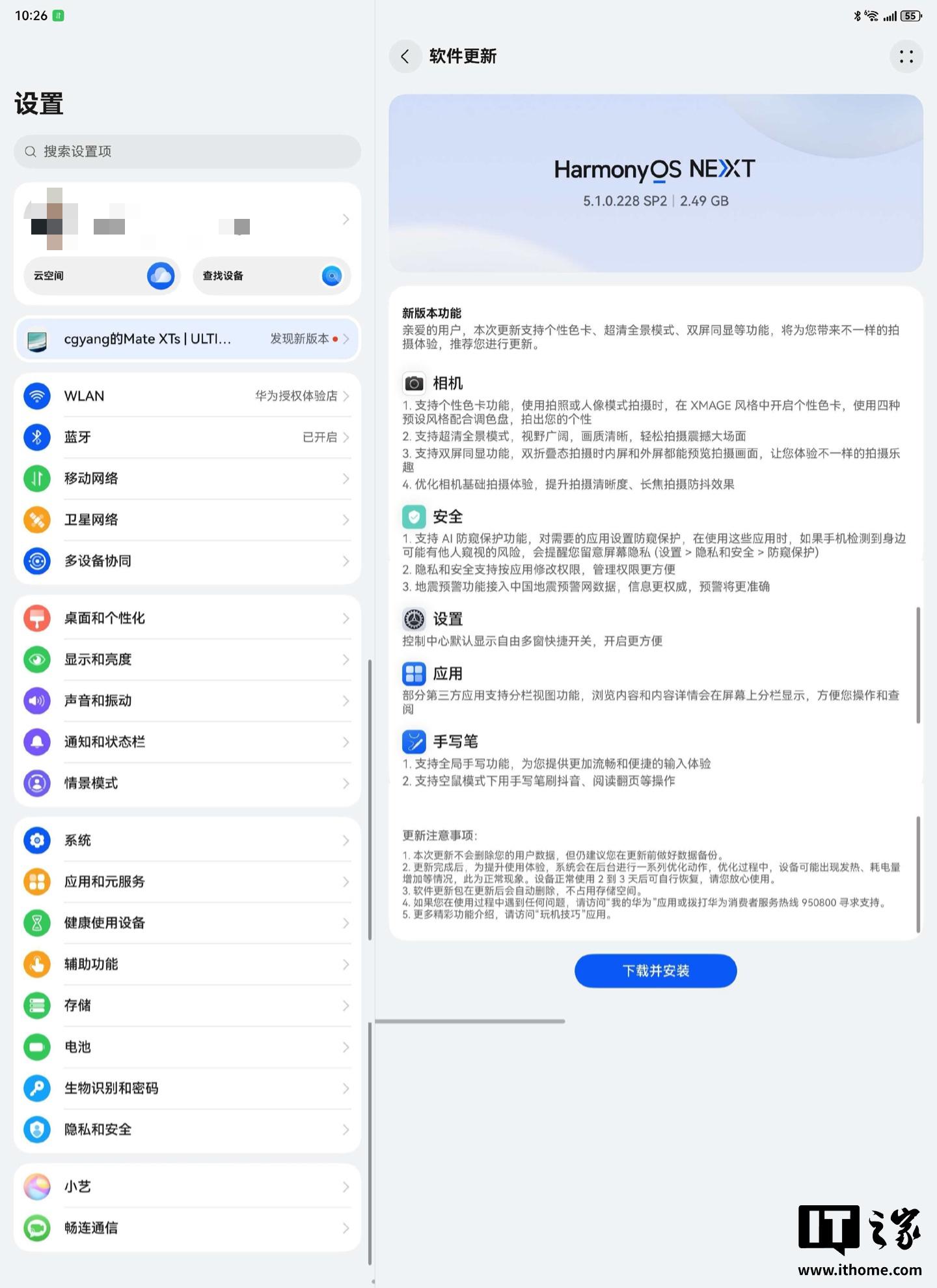 IT之家 9 月 12 日消息配资指数官网,据IT之家小伙伴投稿, Mate XTs 非凡大师三折叠手机现已获得鸿蒙 5.1.0.228 SP2 更新,大小 2.49GB。